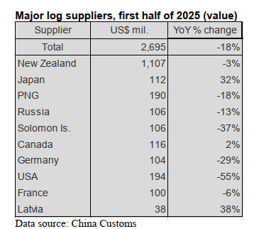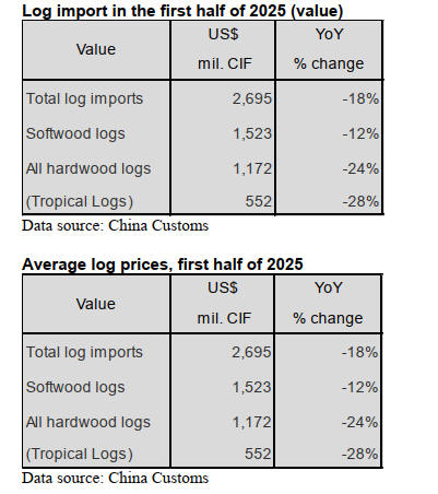 Hardwood log imports dropped 20% to 4.45 million cubic