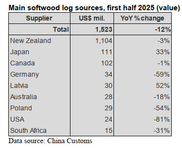 China’s log imports from Japan rose 29% to 897,000 cubic