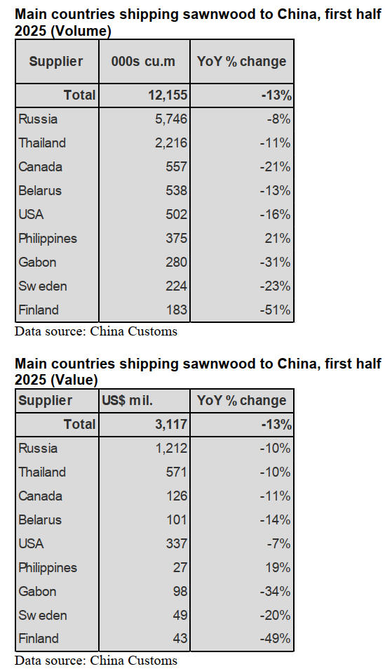 Sawn hardwood imports declined 6% to 4.77 million cubic