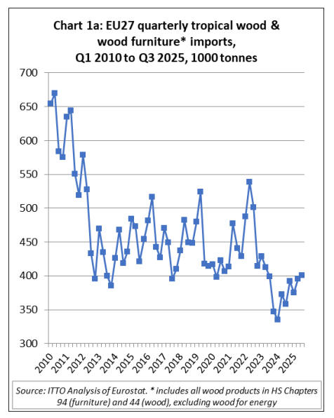 The EU27 imported 1,171,600 tonnes of tropical wood