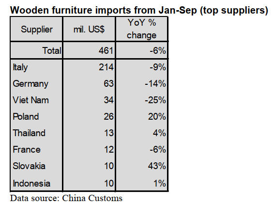 wooden furniture imports in the first three quarters of