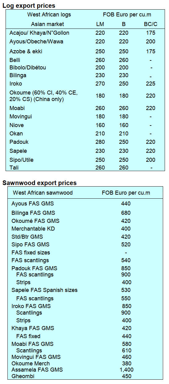 improved demand in China. In contrast, Okoume demand