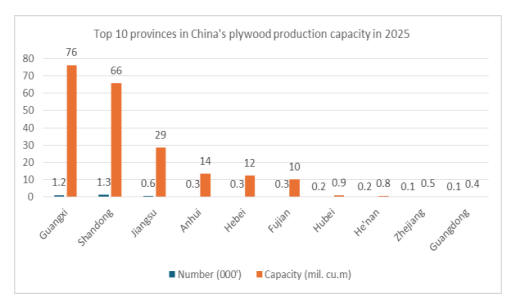 Shandong and Jiangsu Provinces have an annual plywood