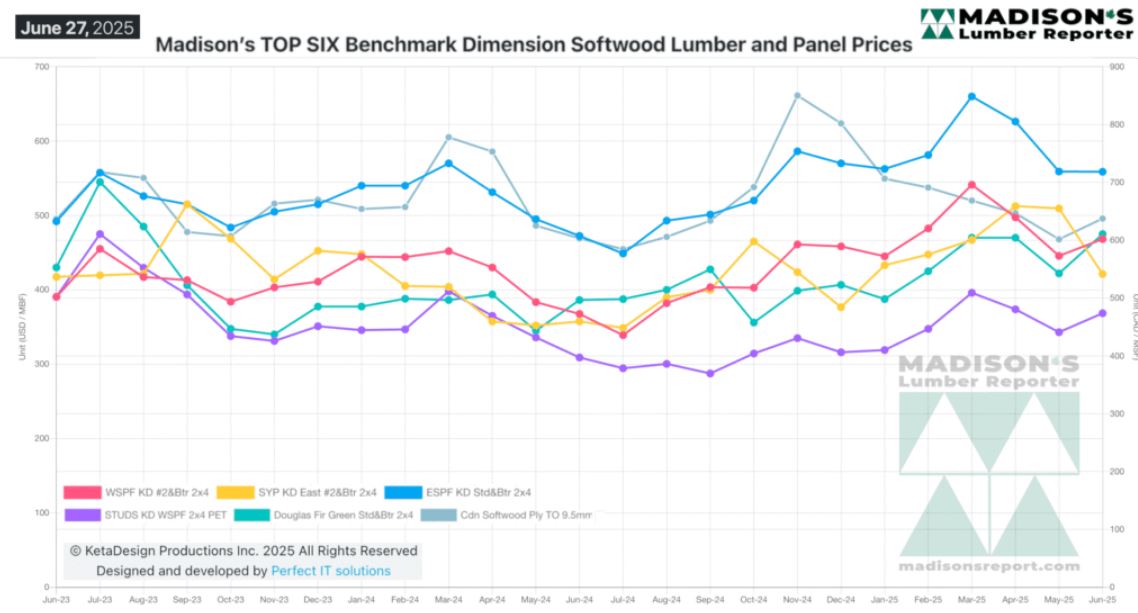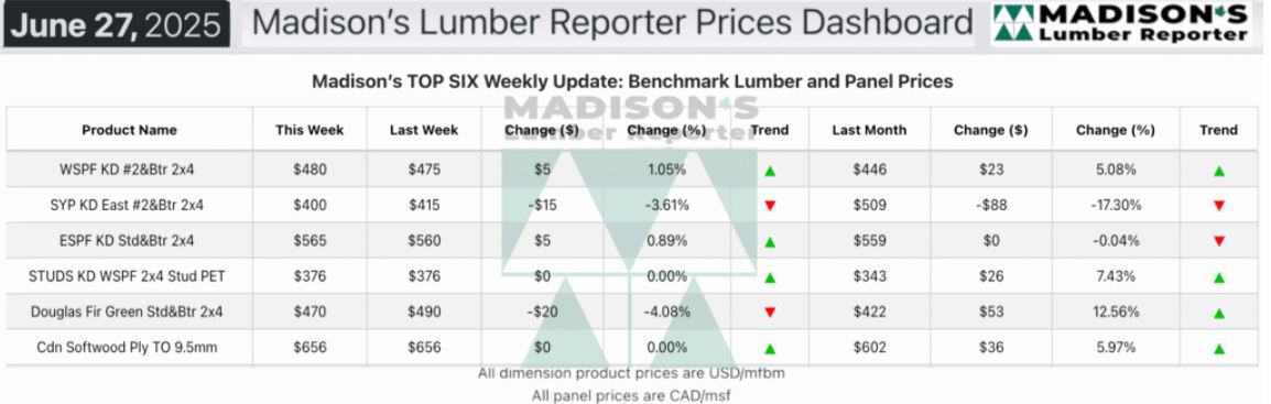 In the week ending June 27, 2025 the price of Western Spruce-Pine-Fir 2×4