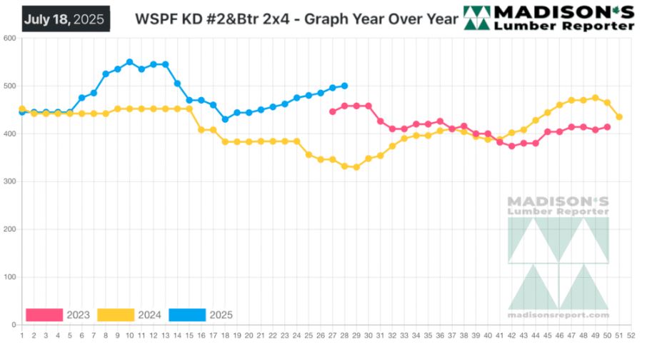 Western Spruce-Pine-Fir 2×4 #2&Btr Kd (Rl) For The Week Ending July 18, 2025