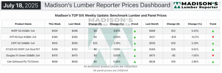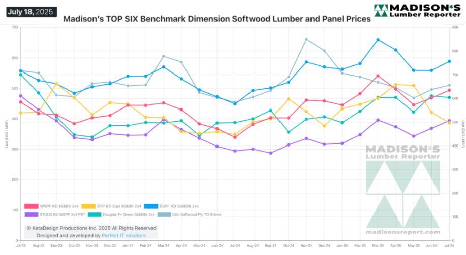 In the week ending July 18, 2025, the price of benchmark softwood lumber