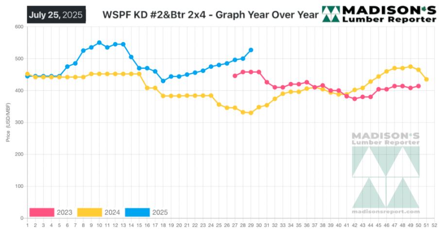Western Spruce-Pine-Fir 2×4 #2&Btr Kd (Rl) For The Week Ending July 25, 2025