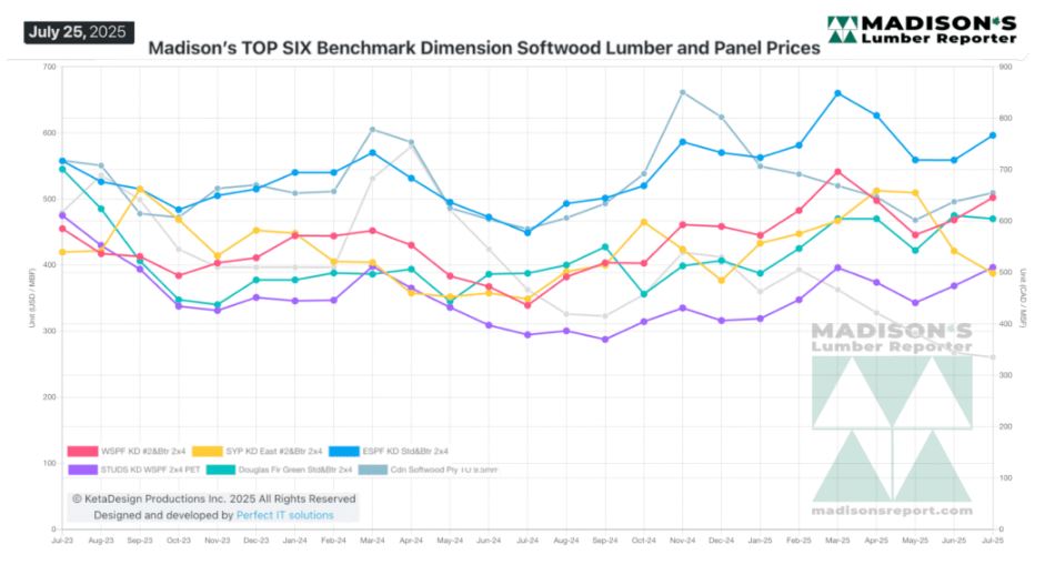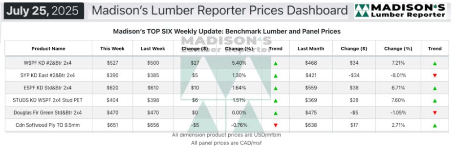 In the week ending July 25, 2025 the price of Western Spruce-Pine-Fir 2×4