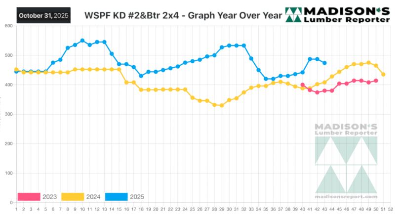 In the week ending October 31, 2025 the price of Western Spruce-Pine-Fir 2×4
