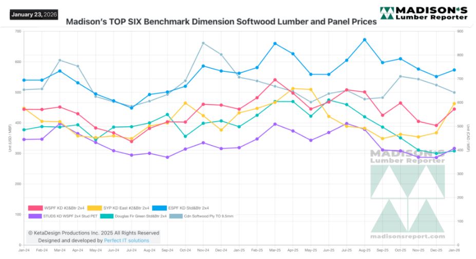 In the week ending January 23, 2026 the price of Western Spruce-Pine-Fir 2×4