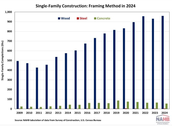 Wood framing continues to dominate the U.S. single-family home