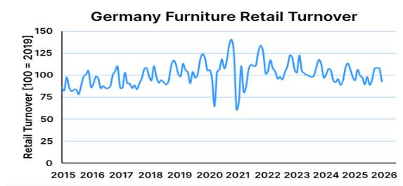 yet reversed. Furniture retail turnover in Germany fell –1.6%