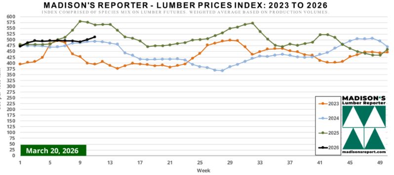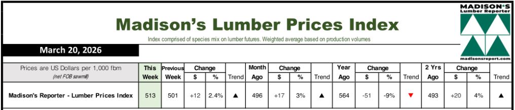 The Madison’s Lumber Prices Index for the week ending March 20,