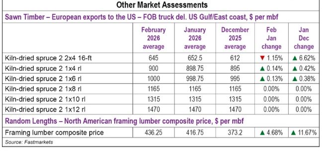 showed quiet firmness, with spruce 44-50×150 mm nudging up 0.81%