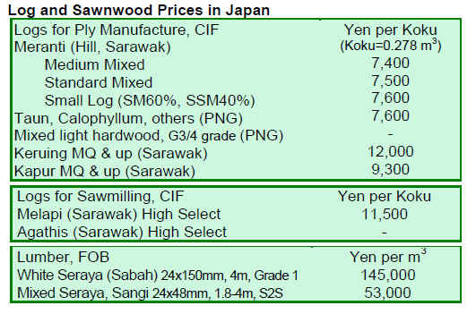 below show the domestic supply of logs in Japan (Table 1)