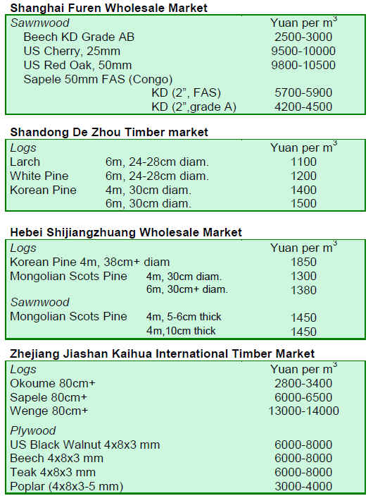 wood products are sold in Shanghai, Shandong and