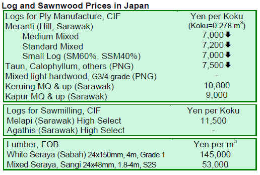 In July 2009, Japan’s plywood imports fell 26.6% by