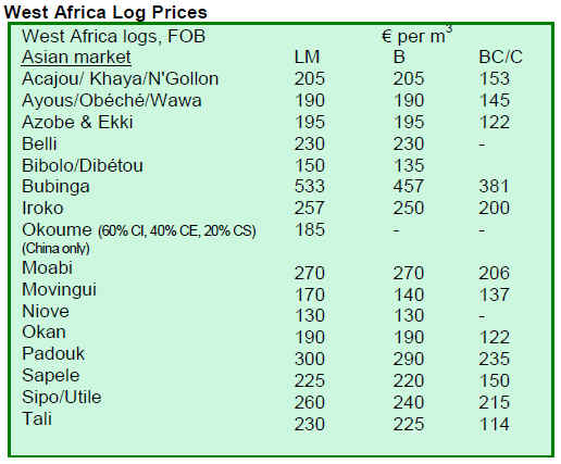 favourable prices (USD 1165/959 per cu.m) for the period.