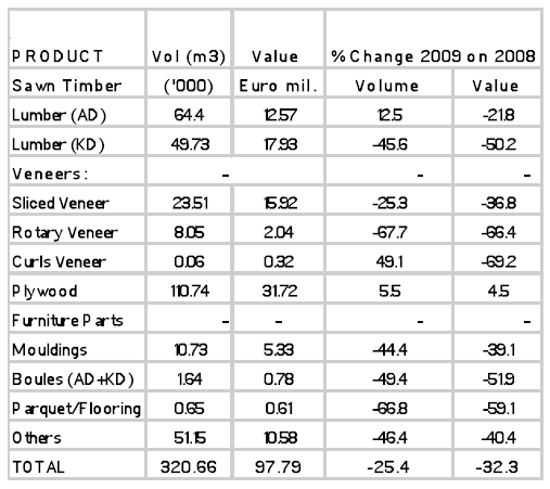 Ceiba, Dahoma, and Wawa. The bulk of the exports were