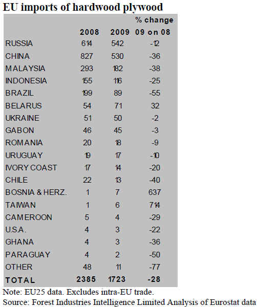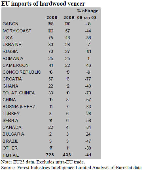 Europe¡¯s hardwood veneer import figures for 2009 bear