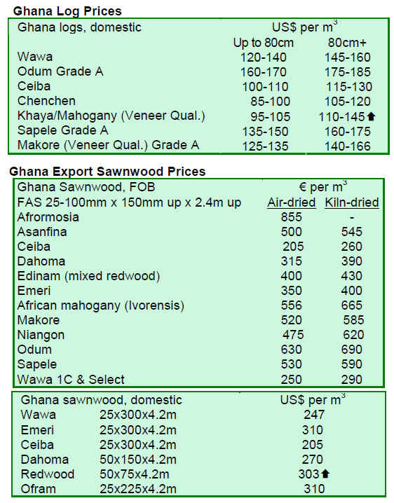 There are some indications that North European importers are prepared to offer higher prices because of their low stocks and limited availability of sawn lumber. Traditionally, importers have relied on stocks held by African exporters with fast and regular shipping schedules.