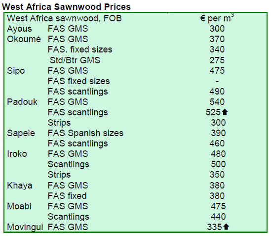 Demand from continental Europe has picked up slightly and this has kept sapele and sipo prices firm. Due to the lower availability and higher prices for some Brazilian species, US buyers are now showing more interest in West African redwood sawnwood e.g. khaya and sapele. Some of the larger international sawmillers in the West African region have global sales coverage and currently they seem to be active in expanding sales in the US market.