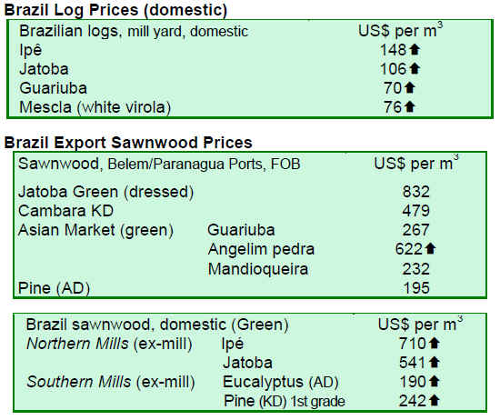 The price average of timber products in Brazil remained unchanged from the last fortnight period. However, the prices quoted in the US dollars increased by 1.70% due to the appreciation of Brazilian currency against the US dollar.
