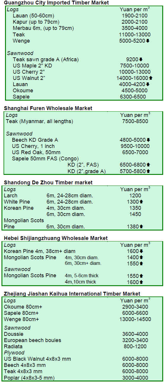 According to analysts, there are two main reasons for the increase in log imports. Firstly, timber product demand in some parts of the European and ASEAN markets is growing as consumers¡¯ purchasing power is improving in line with the economic recovery. Secondly, domestic demand for timber is increasing driven by booming real estate, furniture and flooring markets.