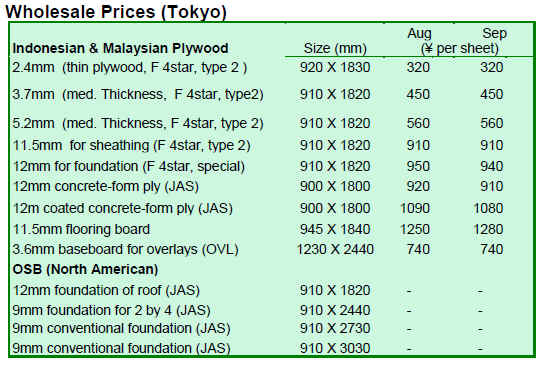 However, tropical timber export prices quoted in US dollars are tending to increase as currencies in South East Asian countries appreciate. This undermines the competitiveness of South East Asian timber against the European and North American imports by Japan.