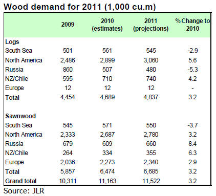 cu.m in 2010 to 11.522 million cu.m. The wood demand in