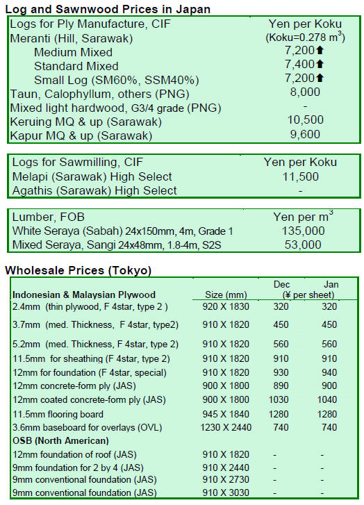 reach Yen 7,000 per koku. Sabah kapur log prices stood at