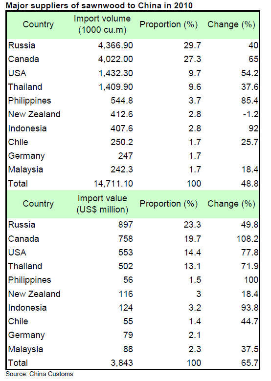In contrast, a total of 539,000 cu.m of sawnwood were