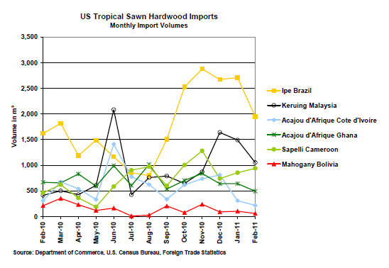 Ipe imports were 2,127 cu.m. (-28%), acajou d¡¯Afrique