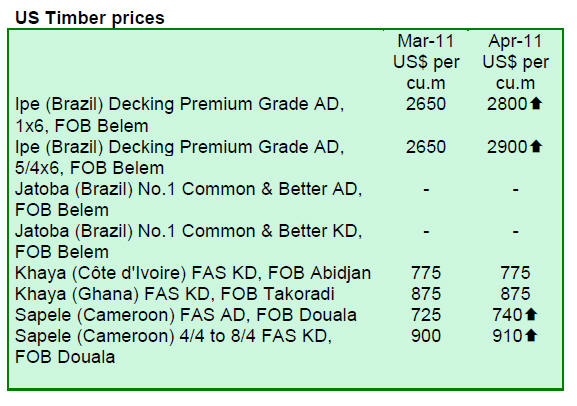 2011 are ipe (+68%), sapelle (+201%) and keruing