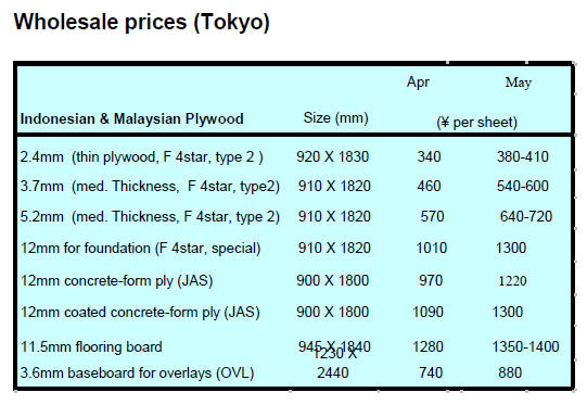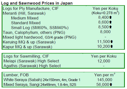 April shipments were Yen 53,000 – 54,000 per cu.m C&F