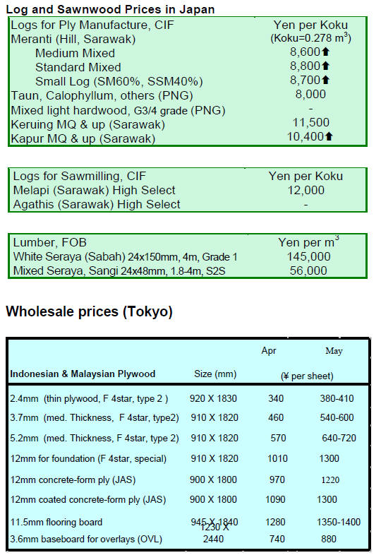 Plywood mills in Japan having to pay Yen 9-10,000 per