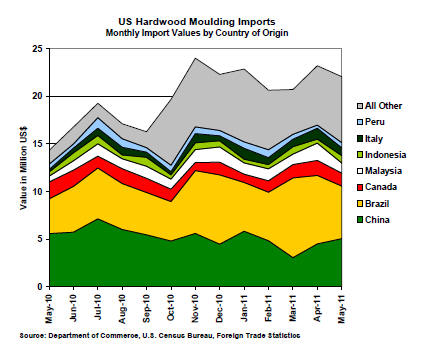 April to 1,697 cu.m. in May due to higher sapelli imports.
