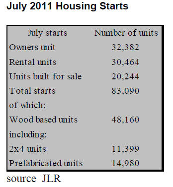 July housing starts in Japan totalled 83,398 units, 21%