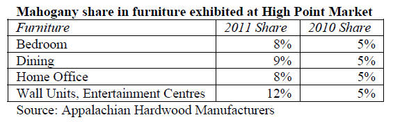 Strong mahogany use in furniture at High Point Market