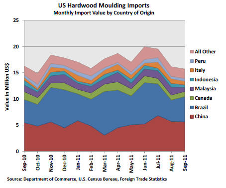 US imports of hardwood moulding weakened again in