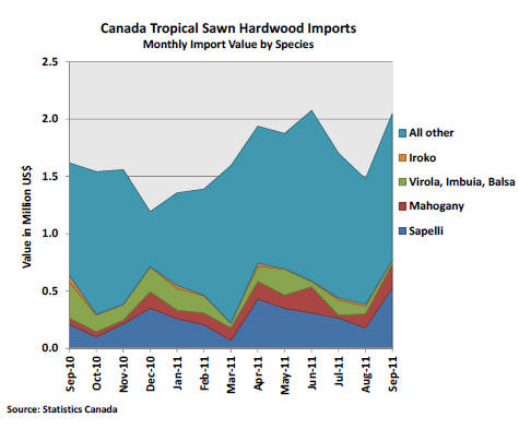 Canada imported US$2 million worth of sawn tropical