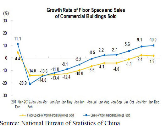The overall sales of commercial buildings in 2012 amounted to RMB