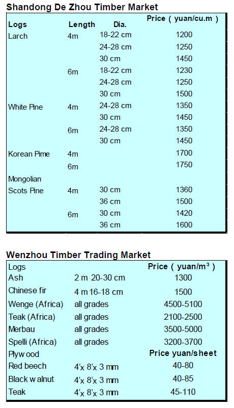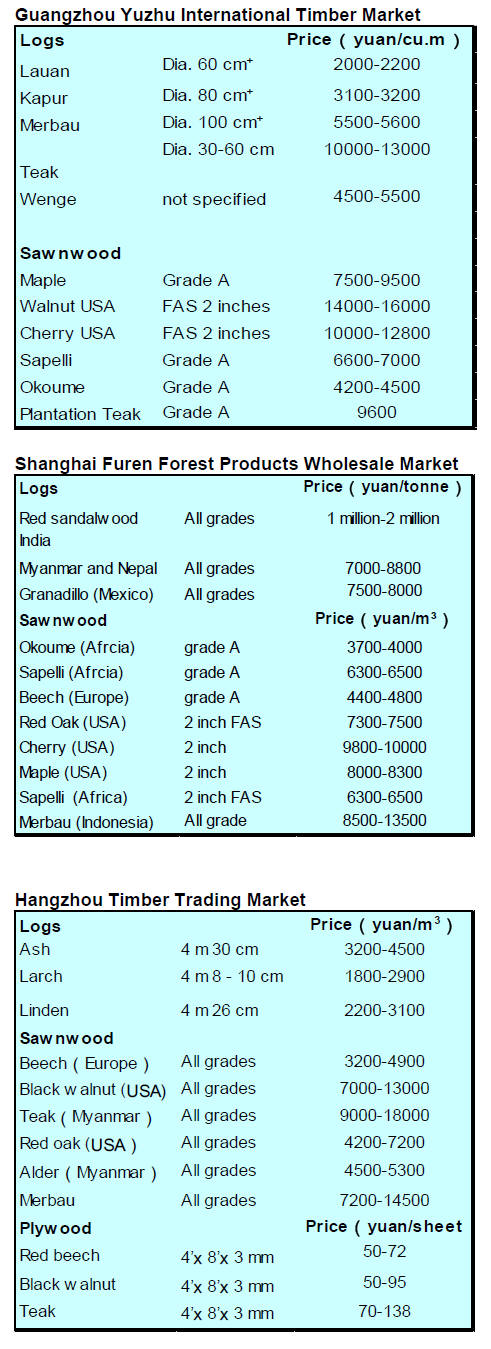 In November last year a timber price index was launched by the Guangdong