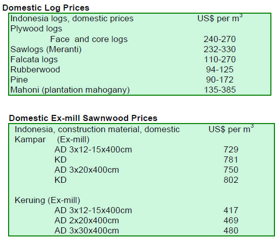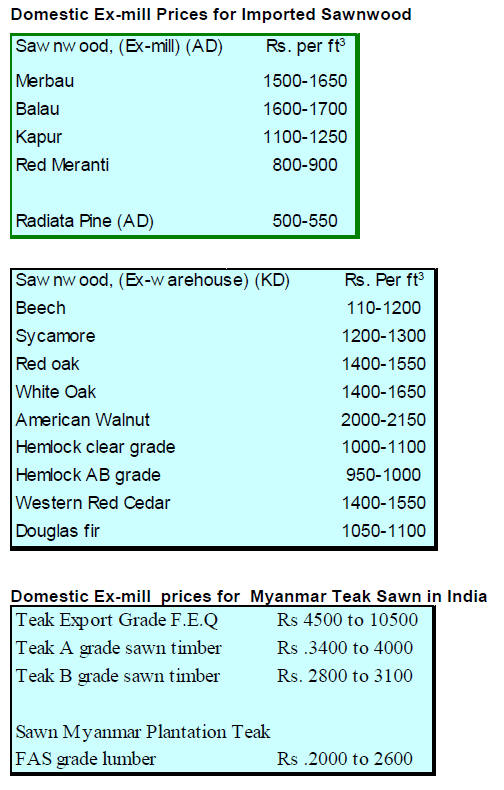 Domestic prices (per cubic foot ex-sawmill) for air dried sawn timber remain unchanged and are indicated below.