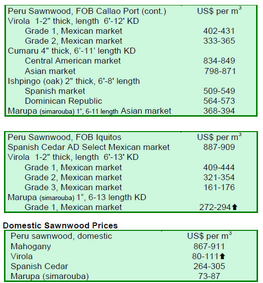 Plywood export prices were significantly higher in the latest round of shipments compared to the prices reported in the previous report earning as much as US$ 1,988 per cubic metre. The Caribbean and Central and South American destinations are the main markets.