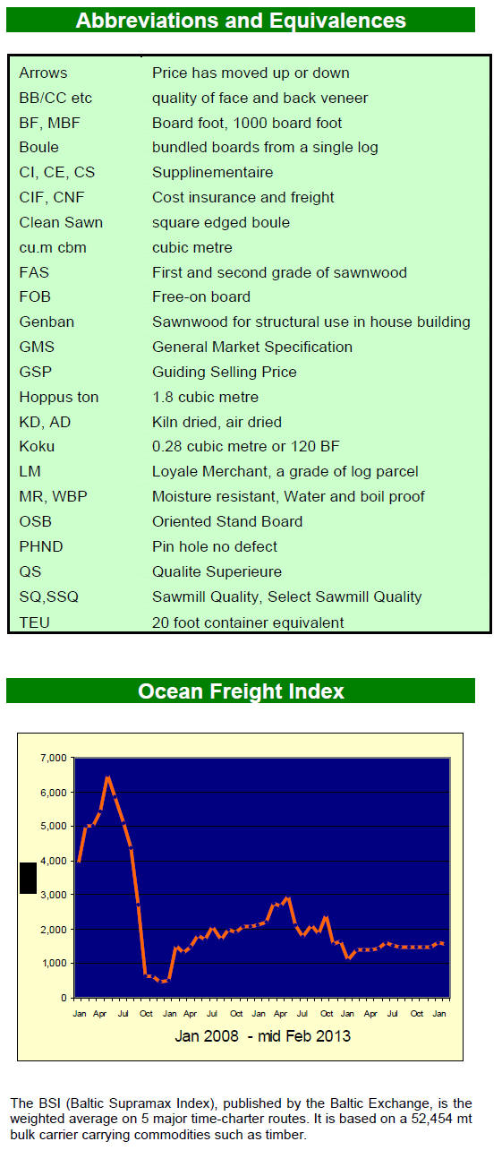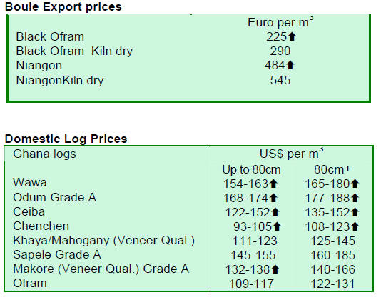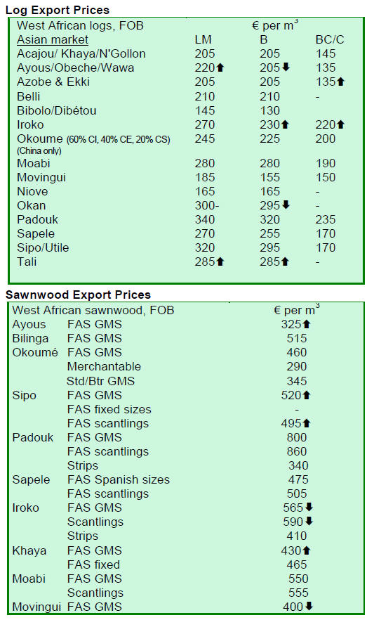 So far this year there is no apparent trend in prices for West and Central African timbers. Exporters in the two regions believe the stable conditions will continue well into the second quarter of 2013.