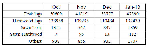 Analysts report that the market situation for teak and non-teak hardwoods is stable and trading is following the usual pattern for the beginning of a year. Teak logs are being sold easily but, in the case of non-teak hardwoods, only freshly harvested logs are of interest to buyers.