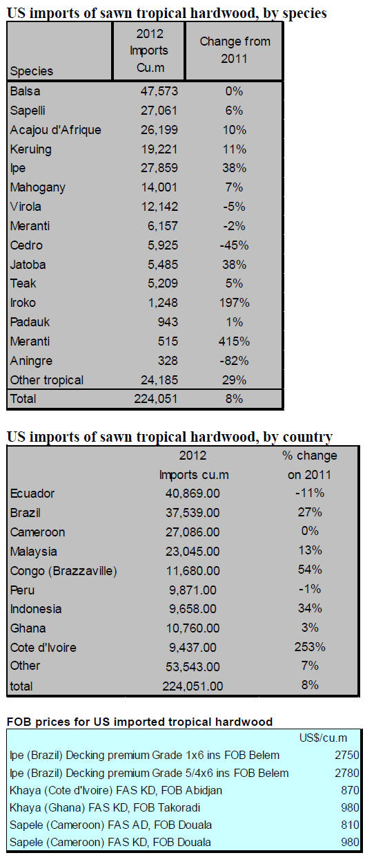 Jatoba imports from Brazil declined to 346 cu.m. Total 2012 ipe imports