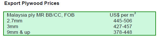 Plywood and Veneer Prices 16-28th February 2013 |