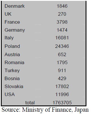 (4.5%). In January all of the top suppliers increased sales to Japan except